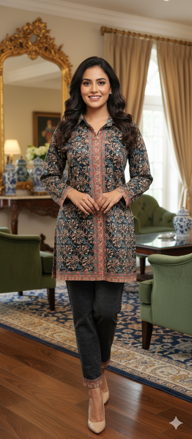 Elevate your party wardrobe with this stunning blue printed velvet coord set. Crafted from premium-quality velvet, this ensemble delivers a luxurious feel and sophisticated drape that commands attention. The intricate printed design adds visual interest while maintaining an elegant aesthetic perfect for festive occasions and celebrations. The coordinated top and bottom pairing ensures effortless styling, allowing you to look polished without the guesswork. Velvet's natural sheen catches light beautifully, making you stand out at any gathering. Ideal for those who appreciate fine fabrics and timeless style.